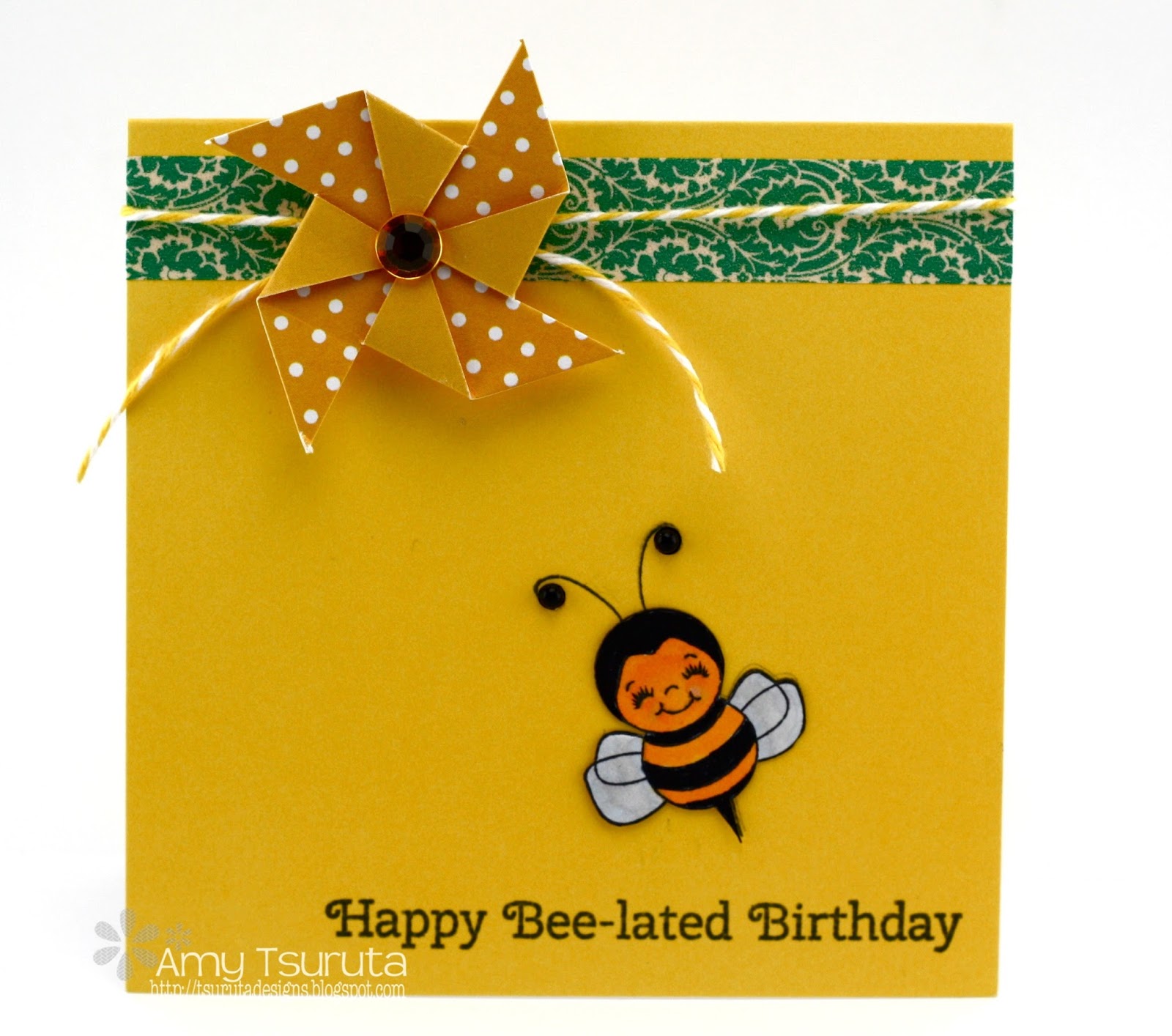 Sweet job on your Bee-utiful creations! I like that you just added a smooth bee face and the pinwheel looks so pretty with the yellow twine. Great cards.